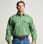 KILCOY | Mens Half Button Long Sleeve Work Shirt - Gum Leaf Green